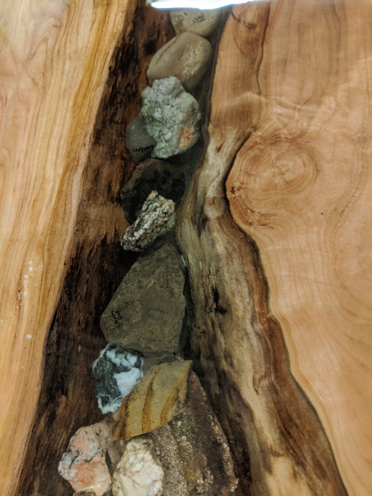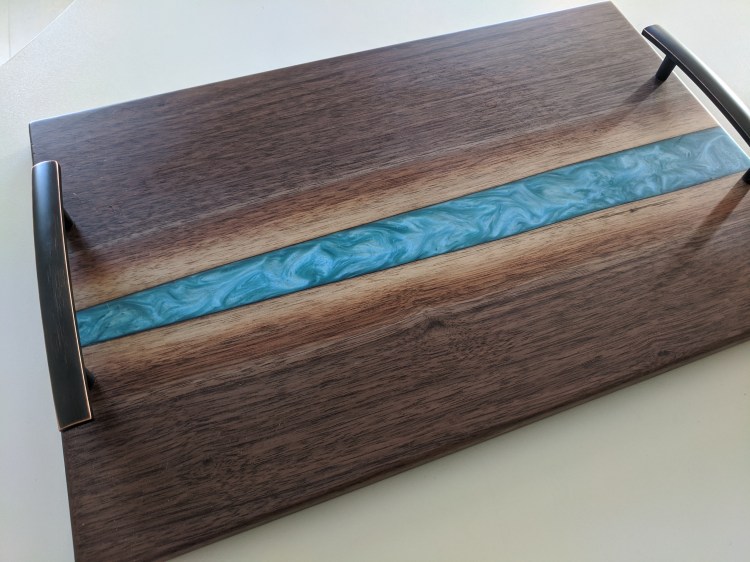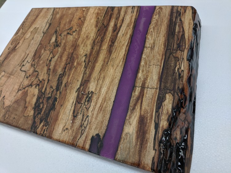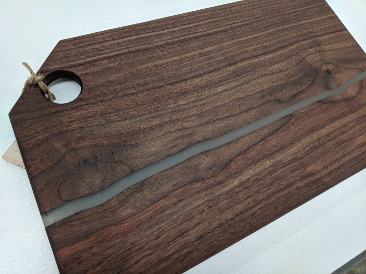 Each board has a different appearance and features. Some the boards had hardwood strips, some end grain and some have resin inlays as well.